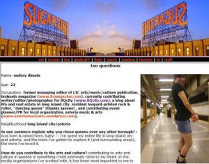 How do you contribute to the arts and culture? contributing to arts and culture in queens is something i hold extremely close to my heart. in the media organizations i’ve worked with, it has been most important to me to do all i can to write about, support, and promote the amazing artists, musicians, and performers in this borough. i’ve taken notice of the way queens is, more often than not, overshadowed by the goings-on in manhattan and brooklyn, and i want to do all i can to continue supporting and spreading awareness of the talent that is — and always has been — right here in queens. my catch phrase of sorts has become ‘let’s show NYC what QUEENS has to offer!’ :)