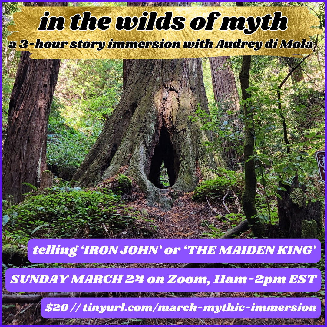 it’s time for a BIG OLD STORY. that at the time of this writing is feeling like– IRON JOHN, or THE MAIDEN KING. in the tradition i learned with/from, i let the stories lead me. they know better than i do who wants to be in the room with those gathered. in the weeks to follow from the time of this posting/writing, that story will become clear.