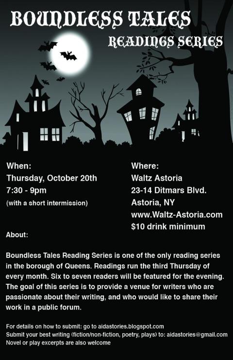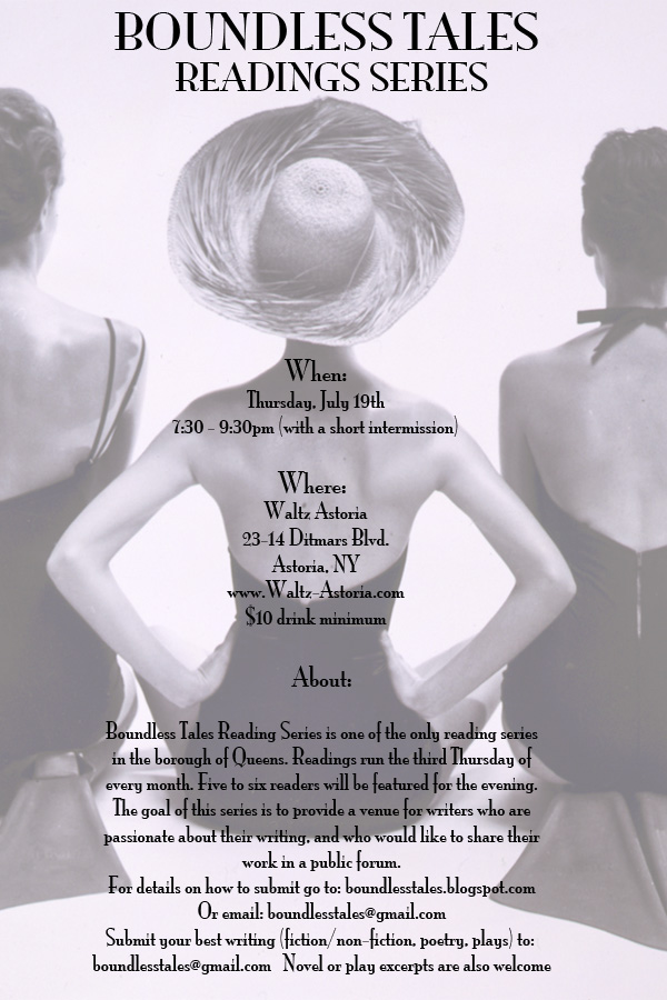 Boundless Tales is one of the only reading series in Queens – more on the reading and info on submitting your work here.