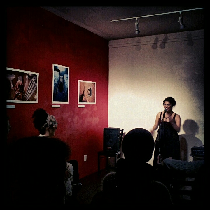 Reading poetry with LIVE IMPROV CELLO ACCOMPANIMENT! Amazing! Featuring: M. Leona Godin (also fabulous host), Audrey Dimola, Kyle Erickson, and singing cellist Calum Ingram, later accompanied by Sho Handa on drums. FB invite for future events is here.