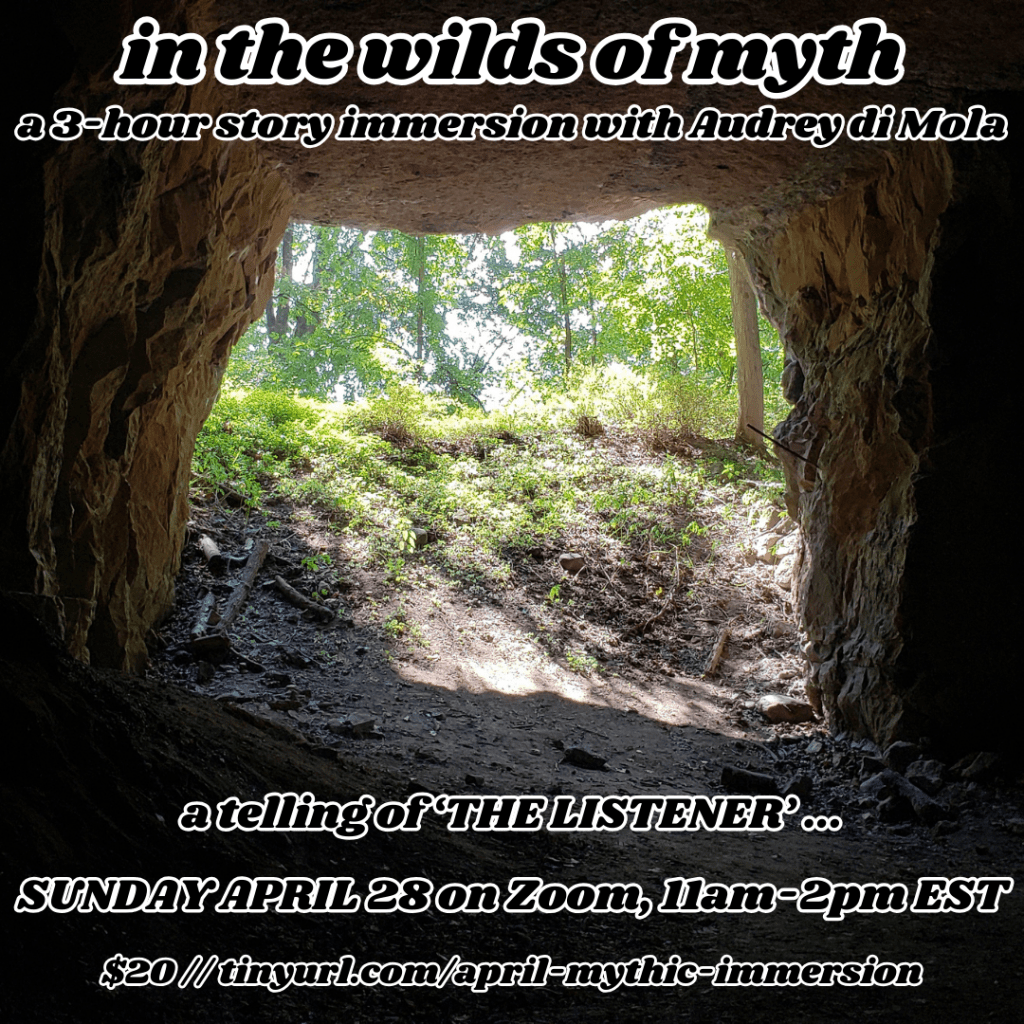 Debut of my monthly story-space online <3 Telling “The Half-Child” and “Narada and Vishnu” (what Michael Meade calls “A Divine Wake-up Call”) …