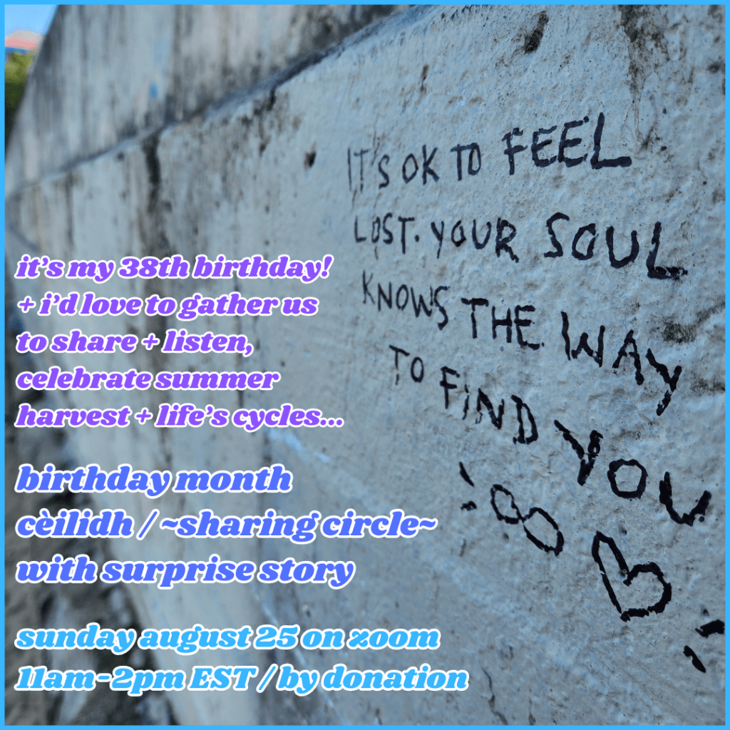 ~ Ongoing: The Imaginal Commons >> the community that formed after my early 2025 ‘singing over the bones’ spaces and from my previous story-gatherings has cohered in an experimental space called THE IMAGINAL COMMONS that aims to meet once a month and invites different community members to step in and space-hold / offer Something to be held in sacred togetherness. although i am helping to tend and shepherding, i am not at the Center of this space in allowance for experimentation/stepping in of the others who are interested in doing so! <3 if this sounds like something you’d like to experience or be a part of, also send me a hi/hallo and we’ll dialogue. :)