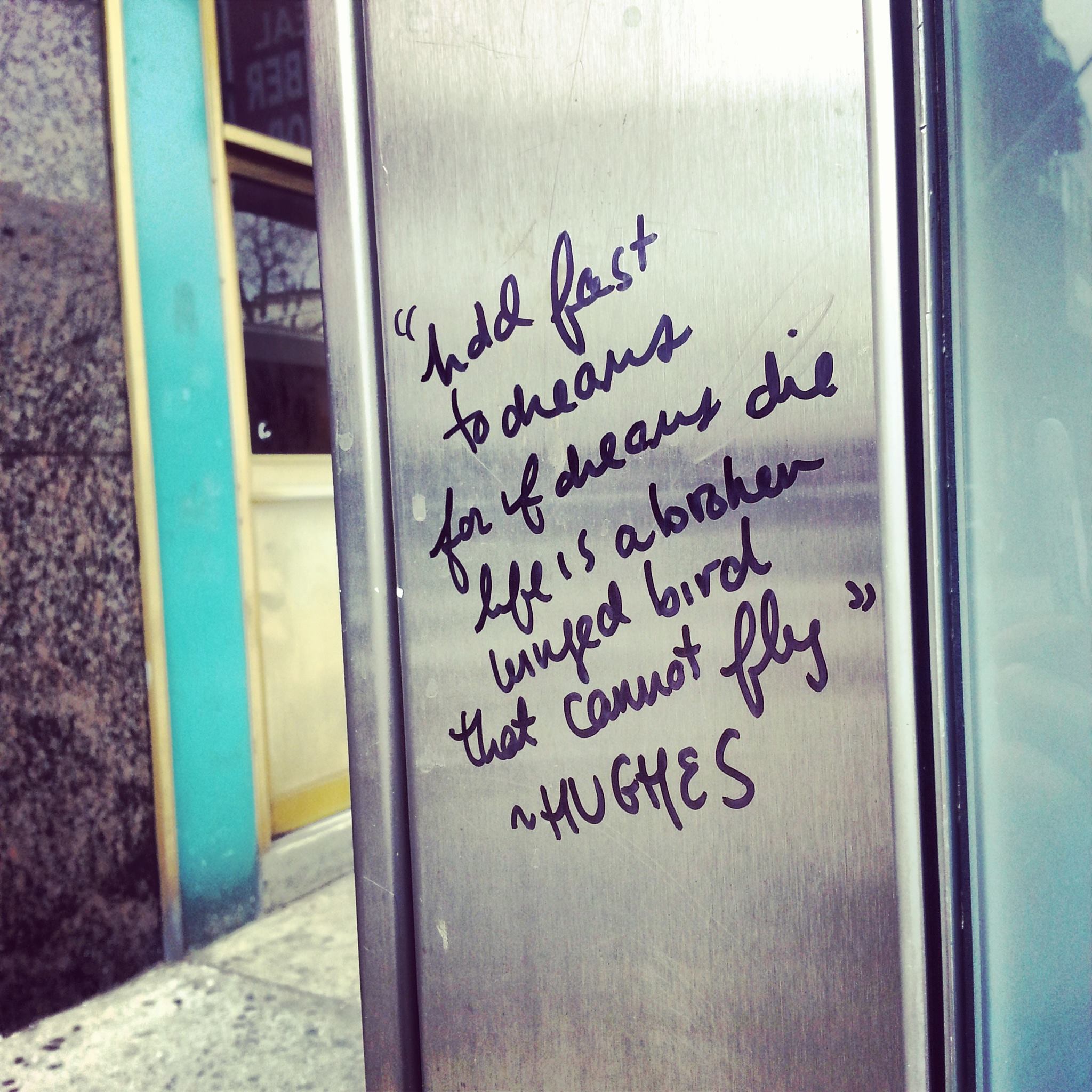 day 11– probably the first poem that ever spoke to me.. fittingly- ‘dreams’ by langston hughes, on broadway in astoria
