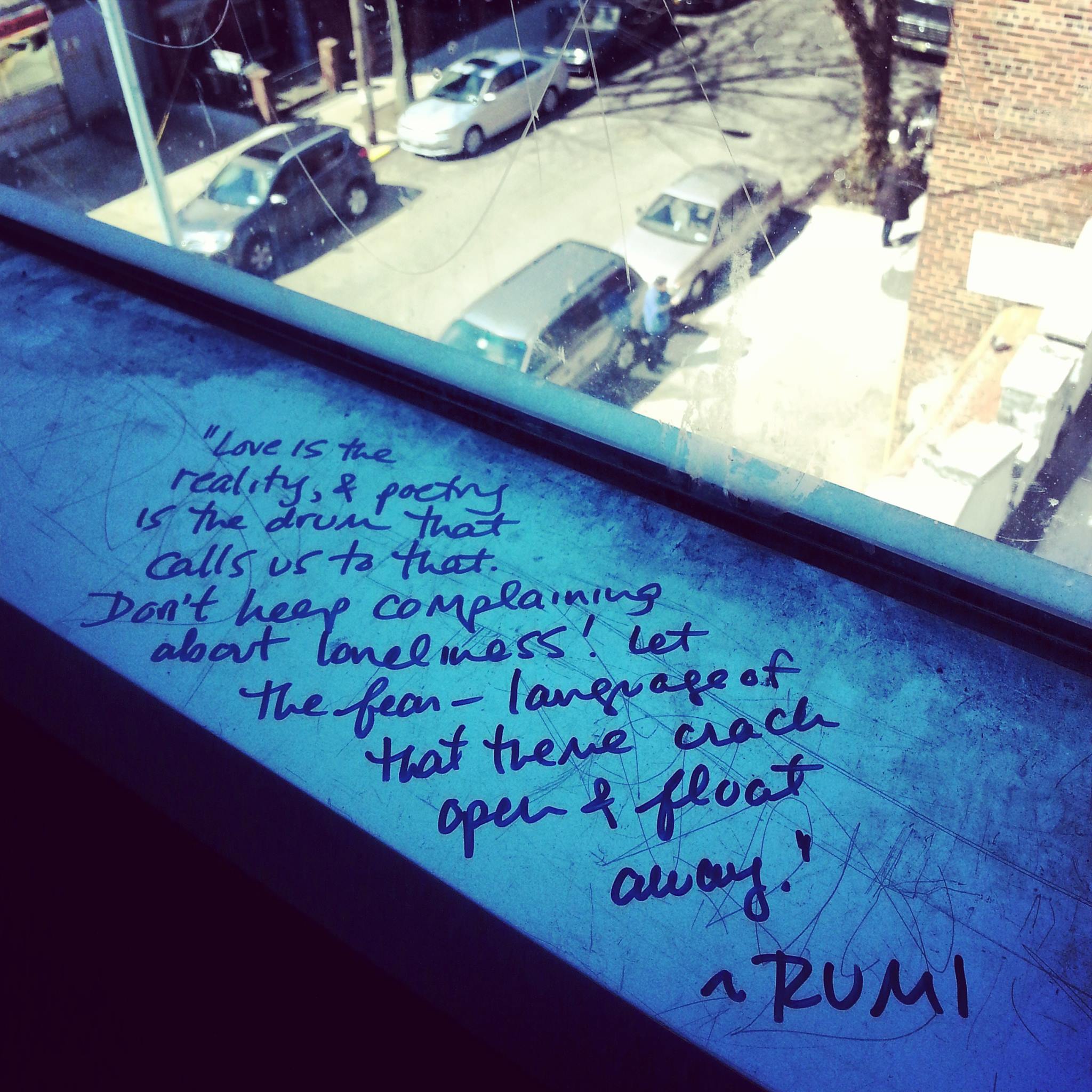 day 6– from ‘wild geese’ by mary oliver; court sq station window, LIC