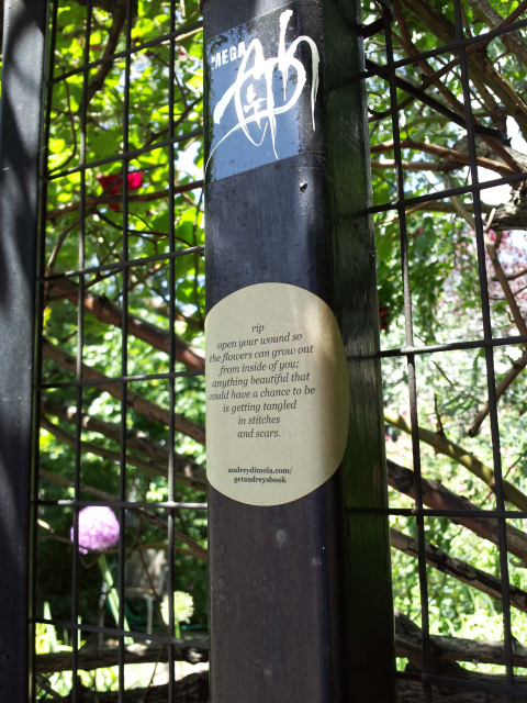 To be able to pay that forward – to connect with the universe in such a way that it allows me to deliver a message to someone at the particular moment they need it – be it a piece of my work, direct spoken encouragement, sharpie-scrawled words on a wall outside, my book, a poem sticker, or just a smile or an outstretched hand.. There’s just nothing better. Because I know how important those moments have been for me – and to be that for someone else is just unbelievably precious.